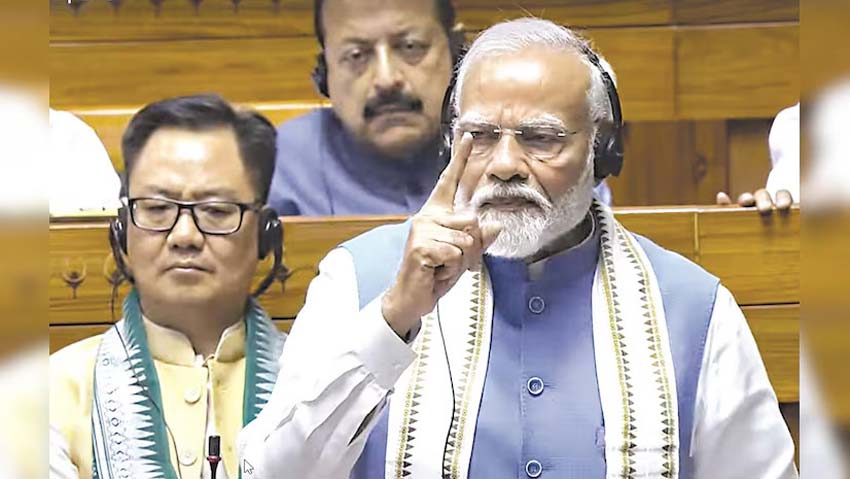 चुनावों के दौरान कांग्रेस पार्टी द्वारा बार-बार यह दावा किए जाने का कि भाजपा संविधान बदल देगी, मोदी ने कहा, "मैं उन्हें याद दिलाना चाहता हूँ। क्या आप यह झूठी कहानी जारी रखेंगे? क्या आप 1977 के चुनाव भूल गए हैं जब अखबार और रेडियो बंद थे? बोलने की आज़ादी नहीं थी। तब लोगों ने एक मुद्दे पर वोट दिया था - संविधान की पुनर्स्थापना और संविधान की रक्षा।" षडयंत्रकारी विपक्ष अब यह कोई रहस्य नहीं है कि कैसे कांग्रेस ने "भाजपा संविधान और आरक्षण को नष्ट कर देगी" का झूठा अभियान चलाया और एससी/एसटी और ओबीसी ने इस कथन पर विश्वास करके भाजपा के खिलाफ़ वोट दिया। क्या आपको लगता है कि यह सब चुनाव के समय अचानक हुआ? नहीं। यह कहानी 3 साल पहले शुरू हुई थी। सवाल यह है कि भाजपा ने पिछले 10 सालों में एससी/एसटी/ओबीसी के लिए इतना कल्याण किया और उन्हें इतने लाभ दिए, फिर उन्होंने कांग्रेस पर भरोसा क्यों किया और भाजपा से दूर क्यों चले गए? इसका जवाब यह है कि यह चुनाव अभियान सिर्फ़ एक चिंगारी थी, कांग्रेस ने पिछले 3 सालों में इस विस्फोट के लिए बारूद बिछा दिया था। पिछले 3-4 सालों में वामपंथी पारिस्थितिकी तंत्र द्वारा यूट्यूब, इंस्टाग्राम और फेसबुक पर दलित उत्पीड़न का बहुत बड़ा प्रचार किया गया। हजारों वीडियो, पोस्ट, पोस्टर बनाए गए, जिनसे पता चला कि भाजपा दलित विरोधी है और उन्हें विभिन्न सोशल मीडिया साइट्स पर पोस्ट किया गया। इस झूठ को फैलाने के लिए कांग्रेस का आईटी सेल दोगुना काम कर रहा था, लेकिन इस सब में विदेशी ताकतें भी शामिल थीं। हाल ही में एक फ्रांसीसी पत्रकार फ्रेंकोइस गौटियर ने खुलासा किया कि कैसे फ्रांस सरकार ने चुनावों के दौरान मोदी विरोधी एजेंडा चलाया और 2024 के चुनावों को प्रभावित करने की कोशिश की। उन्होंने विशेष रूप से सीएनआरएस (फ्रेंच स्टेट रिसर्च ऑर्गनाइजेशन) और इसके प्रमुख जैफरलॉट क्रिस्टोफ का नाम लिया। अब जैफरलॉट कौन हैं? वे पहले व्यक्ति हैं जिन्होंने 4 सितंबर, 2021 को भारत में जाति जनगणना पर एक लेख लिखा था। उन्होंने विशेष रूप से कहा कि - भारत में जाति जनगणना होनी चाहिए - 50 प्रतिशत की आरक्षण सीमा को हटाया जाना चाहिए। अब अगर आप कांग्रेस के इतिहास में जाएं, तो उसने हमेशा भारत में जाति जनगणना का विरोध किया है वे भारत में जाति जनगणना पर शोध करते रहे और राहुल गांधी उनके हर विचार को अपनाते रहे।