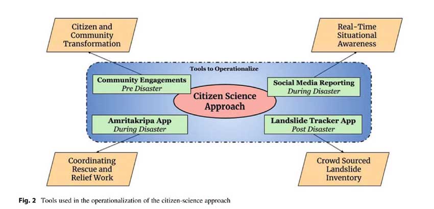 Mitigation measures and early warning systems can be extremely effective to protect communities against landslides. However, a gap between available scientific knowledge and the adoption of technological interventions at the community level in India due to inadequate knowledge and expertise, poor financial and governance support, lack of effective policies and pathways to access these interventions hinder progress informs this paper titled Community scale landslide resilience: A citizen-science approach published in the open access book Progress in Landslide Research and Technology, Volume 2 Issue 2, 2023. Thus, new approaches driven by the citizen centric approach that involve close multi-stakeholder partnership between civil protection officials, academicians, and community members is needed.