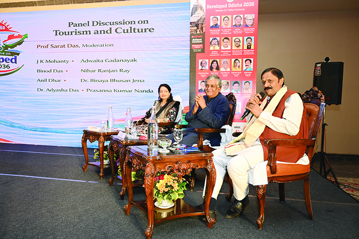 इस सेशन में ओडिशा की क्लासिकल आर्ट्स, मंदिर आर्किटेक्चर, इको-टूरिज्म सर्किट, स्कल्पचर ट्रेडिशन और उभरती हुई कल्चरल डिप्लोमेसी का जश्न मनाया गया। ओडिशा की कल्चरल वेल्थ को एक सस्टेनेबल ग्लोबल ऑफरिंग में बदलने पर ज़ोर दिया गया। इस सेशन के दौरान स्वोस्ति होटल के सीएमडी जे के मोहंती, भारतीय मूर्तिकार अद्वैत गणनायक, सिनर्जी इंस्टीट्यूट ऑफ टेक्नोलॉजी के चेयरमैन बिनोद दास, डब्ल्यूएचओ के रीजनल कॉर्डिनेटर निहार रंजन रॉय, वरिष्ठ अभिवक्ता प्रशन्ना कुमार नंदा, आध्याशा दास तथा मुरली मनोहर शार्मा मौजूद रहे।