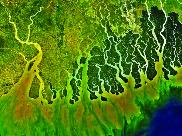 India’s great river deltas have long been seen as landscapes of abundance. A river delta is a triangular lobular landform created when rivers empty their water and sediment into another body of water, such as an ocean, lake, or an estuary. A river slows down as it reaches its end and this causes the sediment and solid material that it carries through its currents to fall or accumulate at the base of the river that gradually builds up into new land. A mature deltaic lobe includes a distributary network—a series of smaller, shallower channels, called distributaries, that branch off from the mainstream of the river.