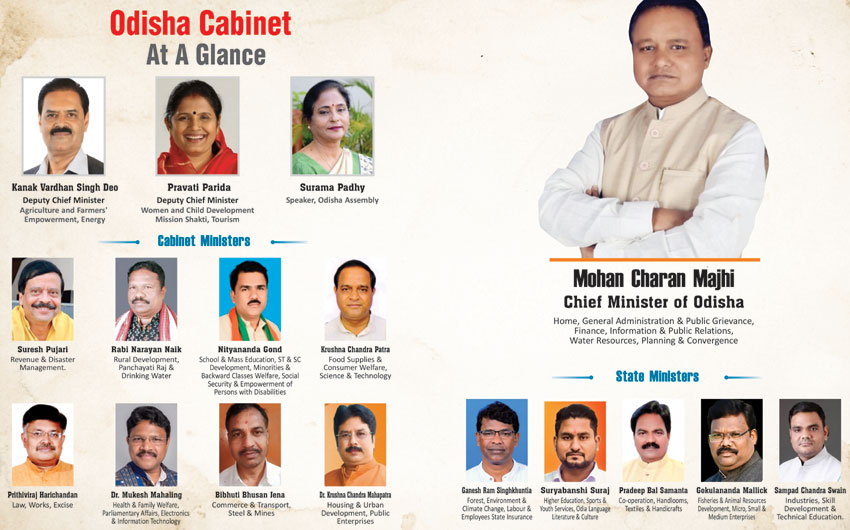 In a ceremony held at the Janata Maidan in Bhubaneswar on June 12, 2024, state governor Raghubar Das swore in Mohan Charan Majhi of the Bharatiya Janata Party (BJP) as the new chief minister of Odisha. He is the first BJP leader to hold the position of Odisha chief minister. In addition, he is the third tribal person to hold the position of chief minister in Odisha, following Giridhar Gamang and Hemananda Biswal, both of the Congress party.