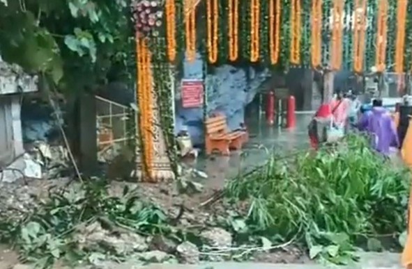 नई दिल्ली: उत्तराखंड तथा हिमाचल प्रदेश में लगातार हो रही बारिश इस वक्त काफी चिंता का विषय बनी हुई है। ऐसे में सोमवार 21 अगस्त की ठीक सुबह उत्तराखंड के देहरादून में प्रसिद्ध टपकेश्वर महादेव मंदिर का एक हिस्सा लगातार बारिश के कारण ढह गया है। सावन के आखरी सोमवार के अवसर पर मंदिर में पूजा-अर्चना करने आए श्रद्धालुओं को परेशानी का सामना करना पड़ा, क्योंकि पेड़ गिरने के कारण मंदिर के प्रवेश द्वार तक जाने वाला रास्ता आंशिक रूप से अवरुद्ध हो गया था। इस घटना में किसी भी प्रकार से जानमाल की कोई हानी नहीं हुई है।