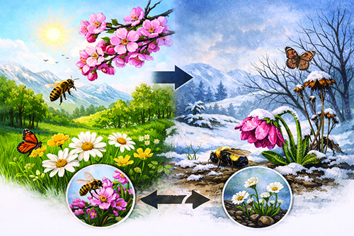 वैज्ञानिकों ने यह भी पाया है कि बदलती जलवायु के कारण फूलों के खिलने का समय भी बदल रहा है। कई क्षेत्रों में पौधे पहले की तुलना में जल्दी फूलने लगे हैं। यह परिवर्तन कभी-कभी परागणकर्ताओं के जीवन चक्र से मेल नहीं खाता। यदि फूल जल्दी खिल जाएँ और उस समय परागणकर्ता मौजूद न हों, तो पौधों का प्रजनन बाधित हो सकता है। इसे पारिस्थितिकी में “फेनोलॉजिकल असंतुलन” कहा जाता है। ऐसी स्थिति में फूलों के रंग और सुगंध में होने वाले परिवर्तन परागणकर्ताओं को आकर्षित करने की नई रणनीति के रूप में विकसित हो सकते हैं।